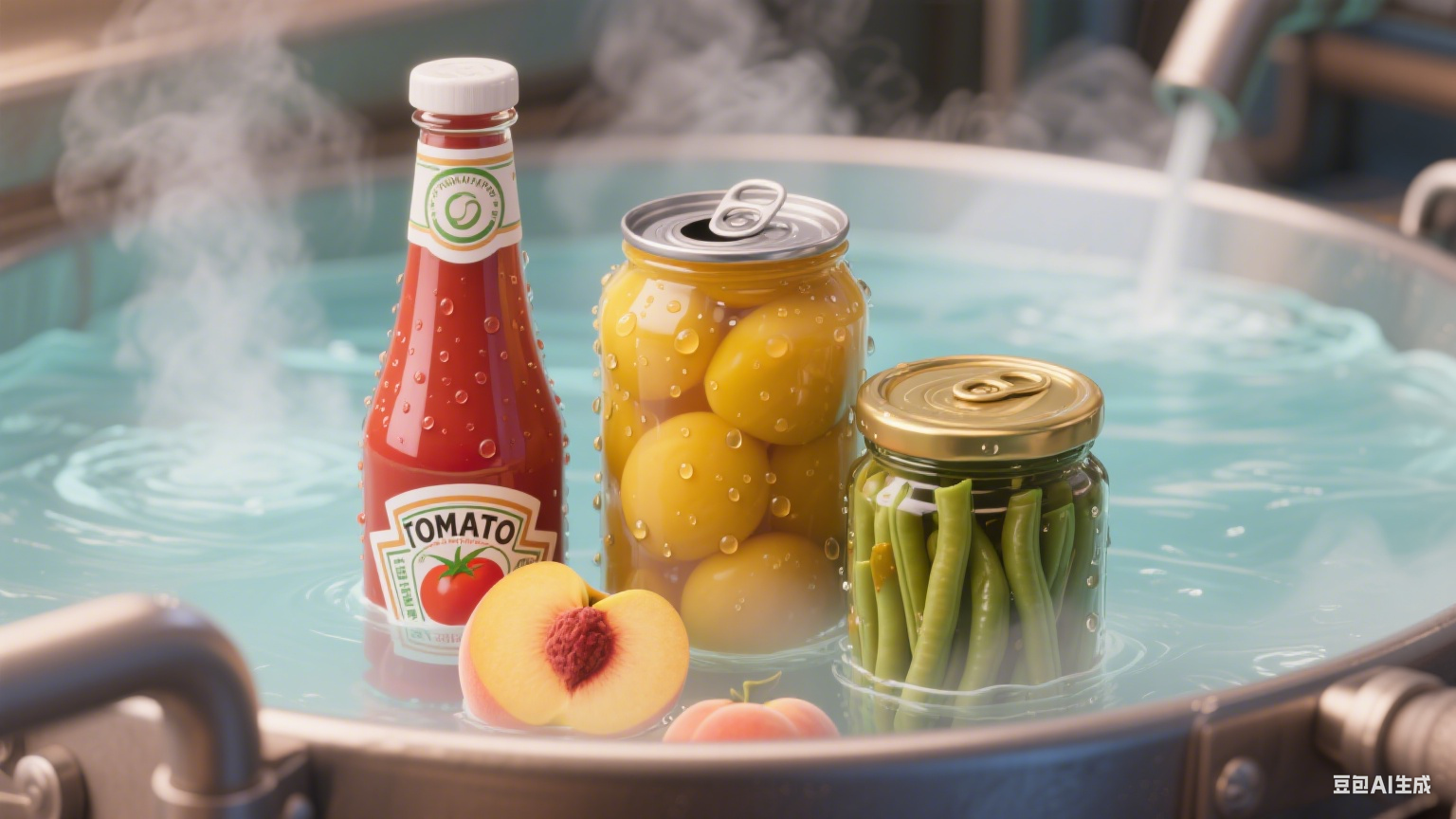 三是瓶装 / 罐装的果蔬制品,例如瓶装番茄酱、罐装黄桃、密封装的酸豆角等。这类物料多为酸性或含水分较多,水浴杀菌能避免高温直接烘烤导致的营养流失,还能通过稳定的水温控制,防止玻璃瓶、易拉罐因受热不均炸裂,保证果蔬制品的色泽和风味,像番茄酱杀菌后仍能保持鲜亮色泽,罐装黄桃也不会软烂变形。